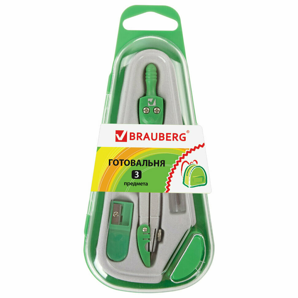 Готовальня Brauberg "Klasse", 3 предмета: циркуль 115 мм, грифель, точилка (210330)