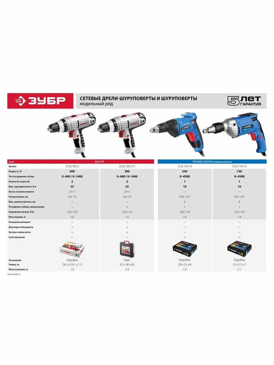Ниже Вы можете прочитать отзывы на Шуруповерт сетевой "ЗУБР" Профессионал ЗСШ-730-45, HEX 1-4, 220В, 730Вт, 0-4500 об-мин, ознакомится с подробными характеристиками, посмотреть интересные обзоры и фотографии на Шуруповерт сетевой "ЗУБР" Профессионал ЗСШ-730-45, HEX 1-4, 220В, 730Вт, 0-4500 об-мин.
