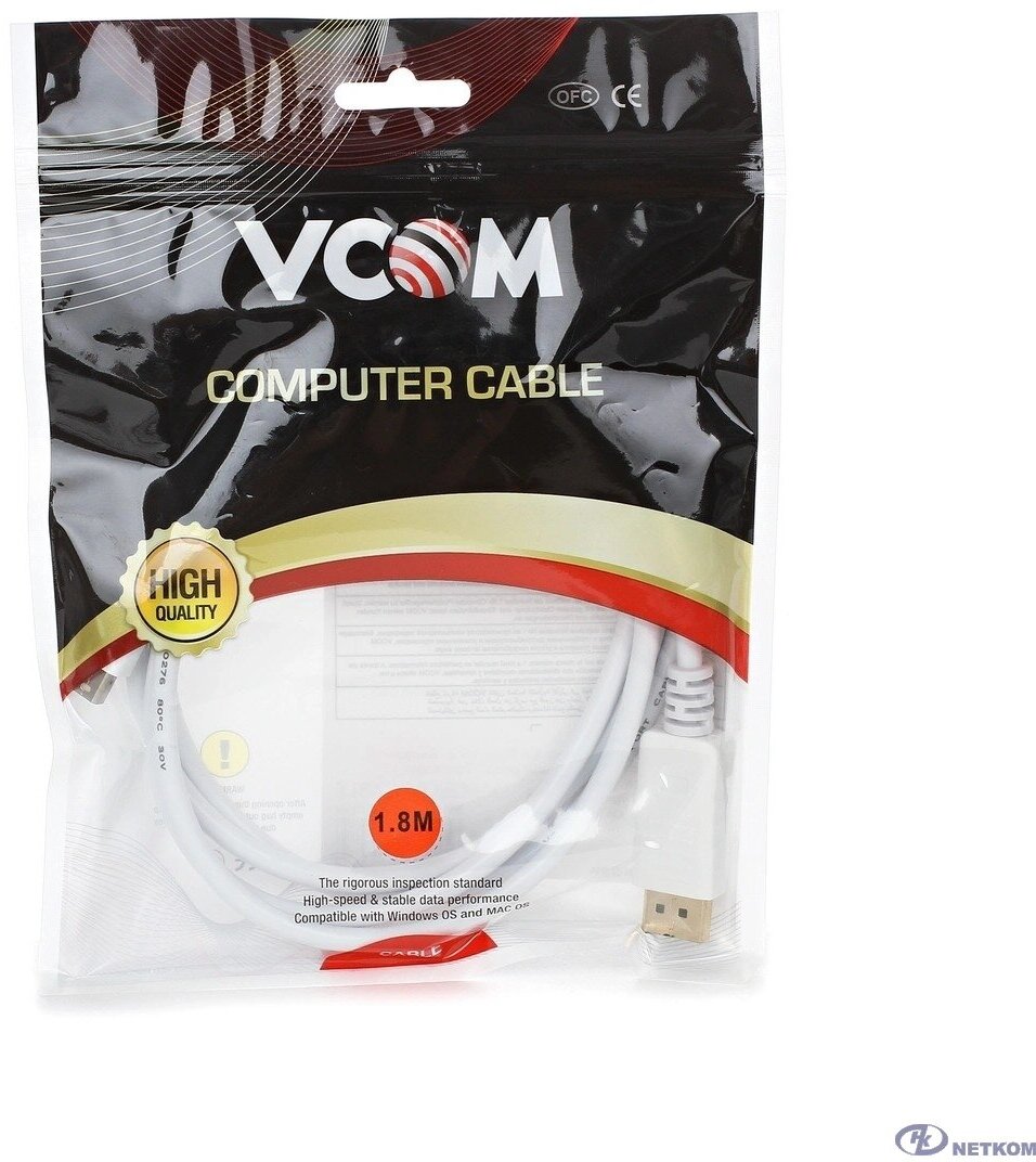 Кабель VCOM Mini DisplayPort - Display Port (CG681), 1.8 м, 1 шт., белый
