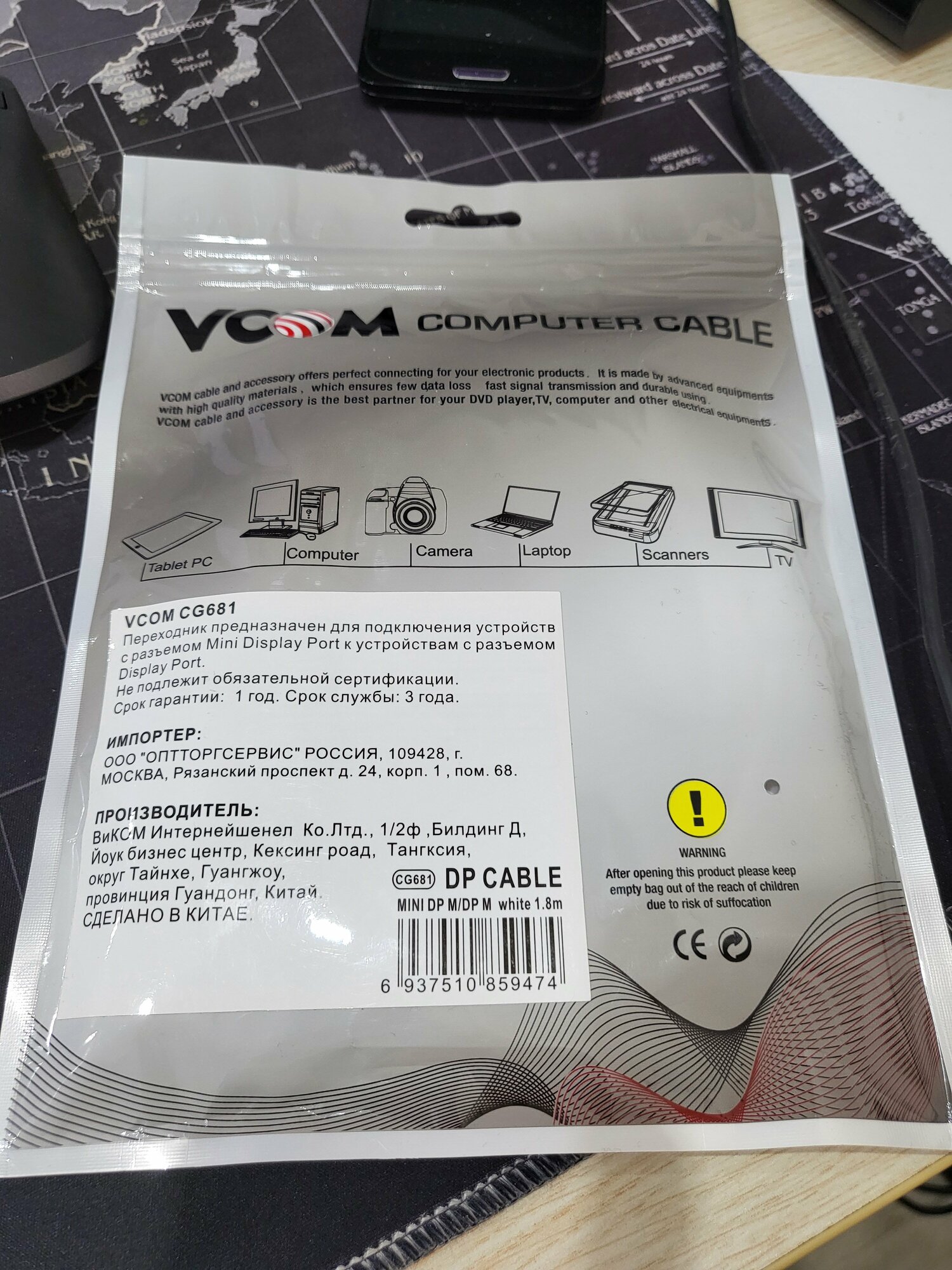 Кабель VCOM Mini DisplayPort - Display Port (CG681), 1.8 м, белый интересное: