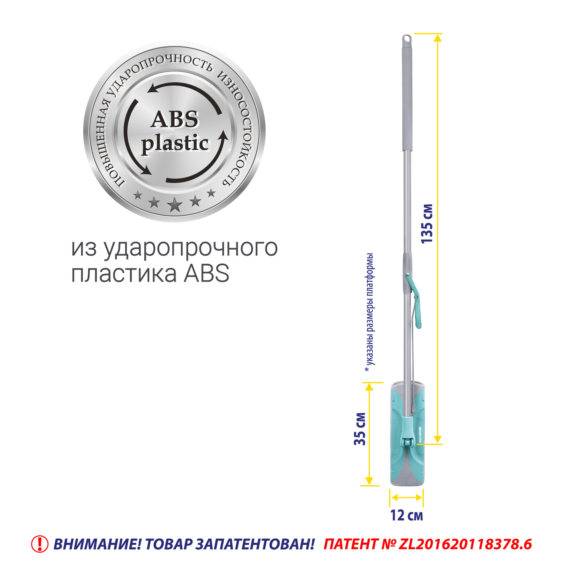 Hausmann Швабра для влажной уборки пола с механизмом отжима HM-67 .