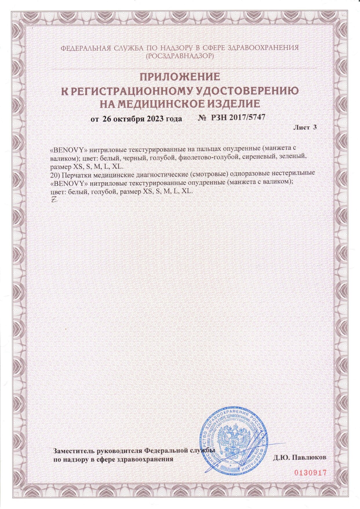 Перчатки Benovy медицинские нитриловые голубые XS 3,0 гр 50 пар(50 шт.)