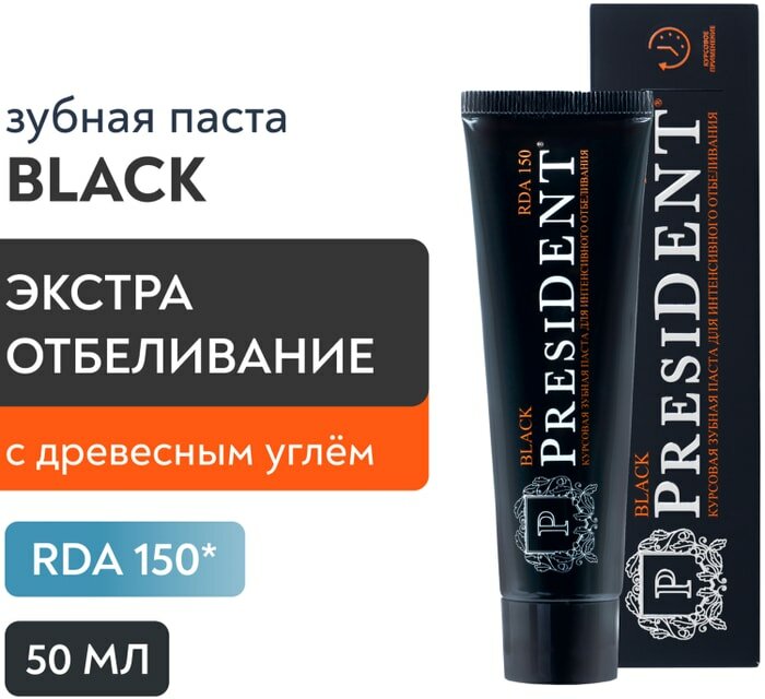 PRESIDENT Зубная паста Black (150 RDA) 50 мл