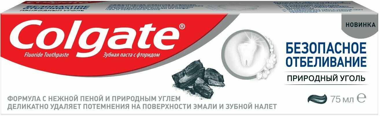Colgate Зубная паста Безопасное отбеливание, Природный уголь, 75 мл, 2 штуки интересное: