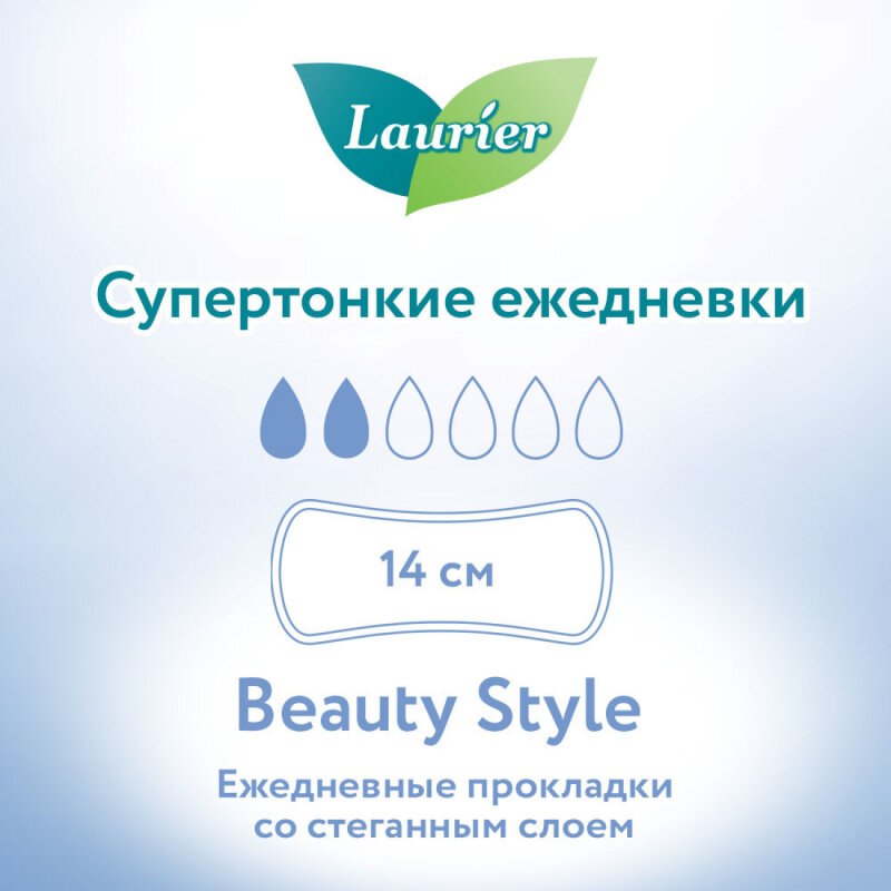 Ежедневные ультратонкие прокладки / Ежедневки / Laurier Beauty Style без запаха, 2 капли, 14 см, 36 шт