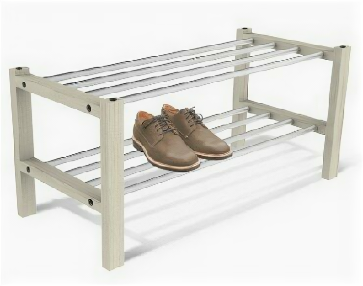 Полка для обуви, металл, дерево, 2 секции, 65х29.5х29 см, беленая, Sheffilton, Альберо, SHT-SR9