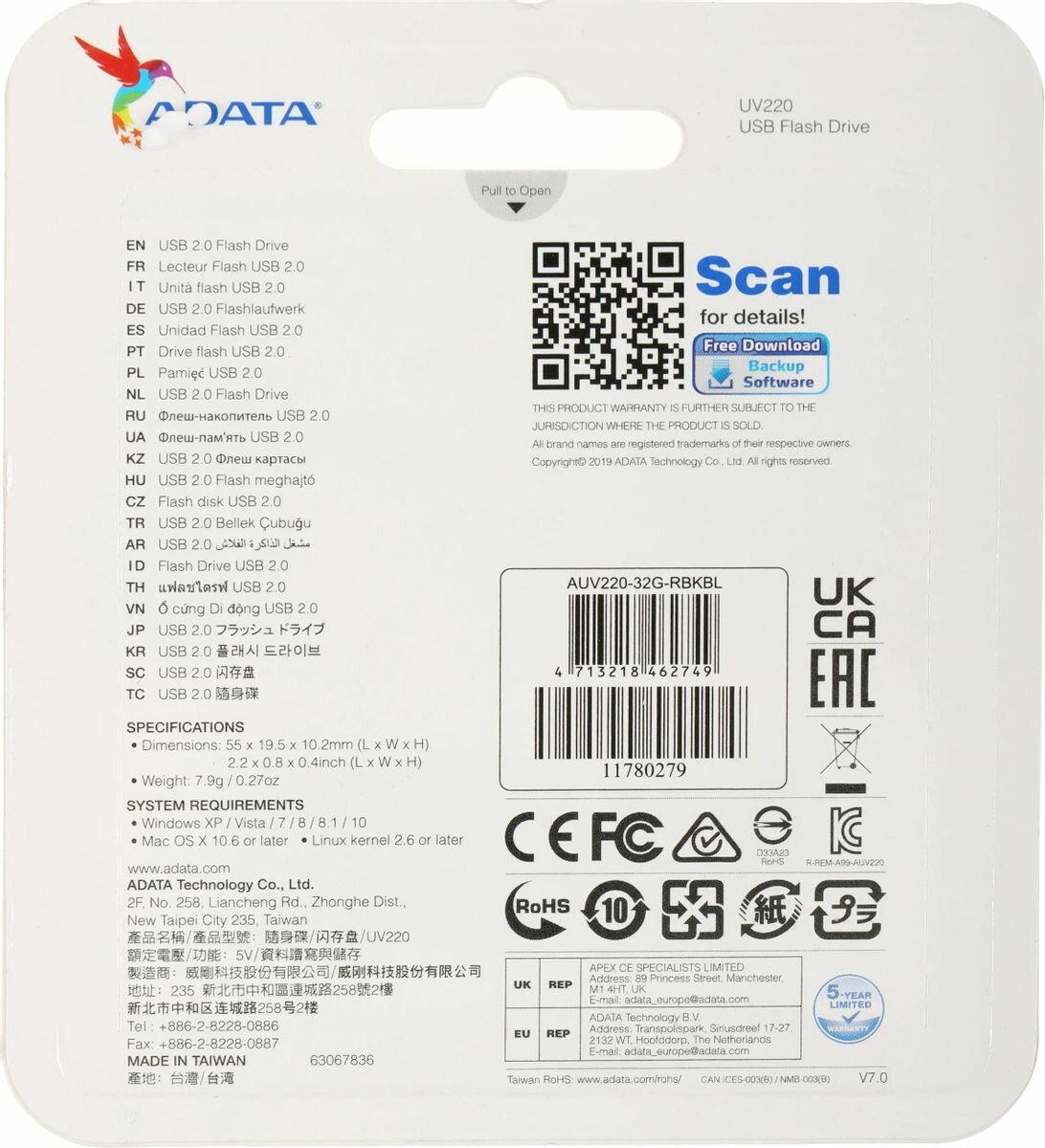 Adata UV220 (auv220-32g-rbkbl) USB2.0 Flash Drive 32Gb