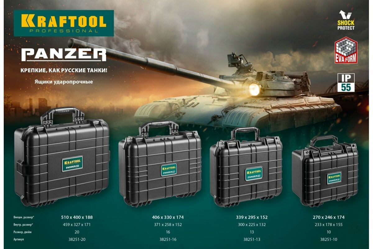 KRAFTOOL PANZER-10, 270 х 240 х 170 мм, (10″), IP55, ударопрочный пластиковый ящик (38251-10)