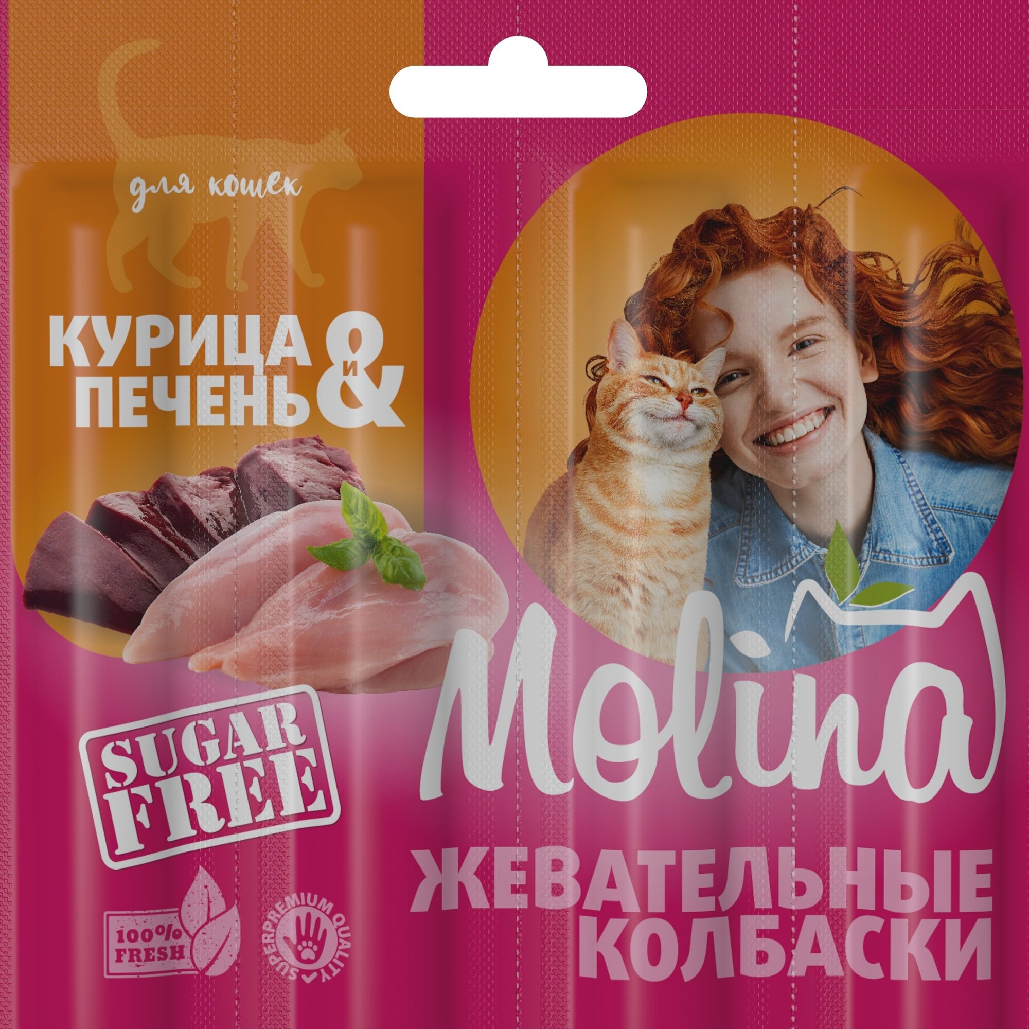 Molina Жевательные колбаски д/кошек Курица и печень, 20г