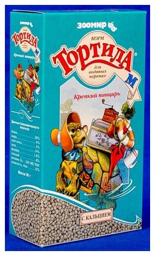 Зоомир "Тортила-М Крепкий панцирь" корм для водяных черепах с кальцием упаковка, 90 гр