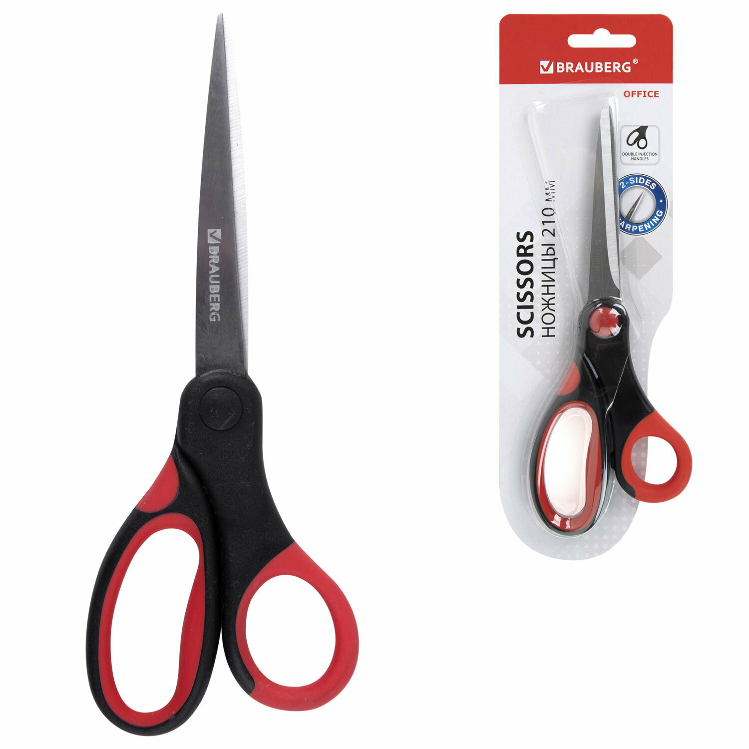 Ножницы BRAUBERG "Office", 210 мм, прорезиненные ручки, красно-черные, 2-х сторонняя заточка, блистер, 231566