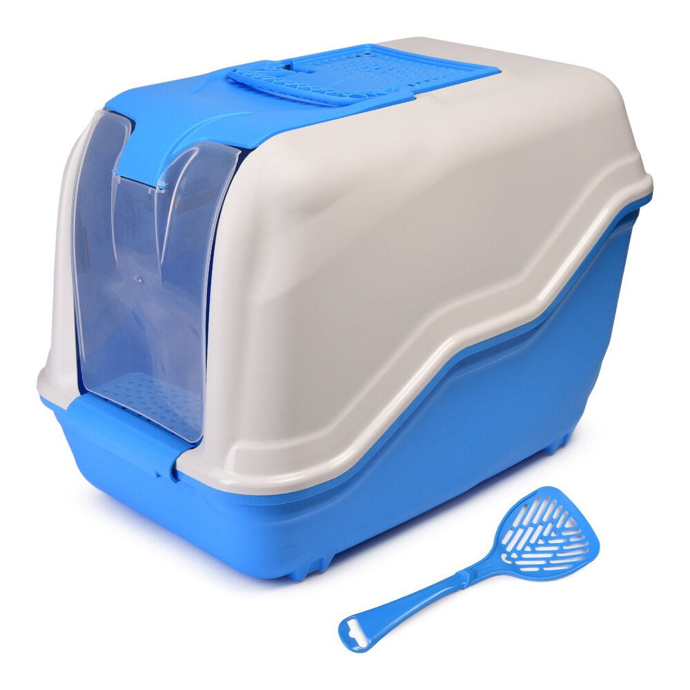 Закрытый био-туалет с совком для кошек MPS Netta, голубой, 54х39х40см