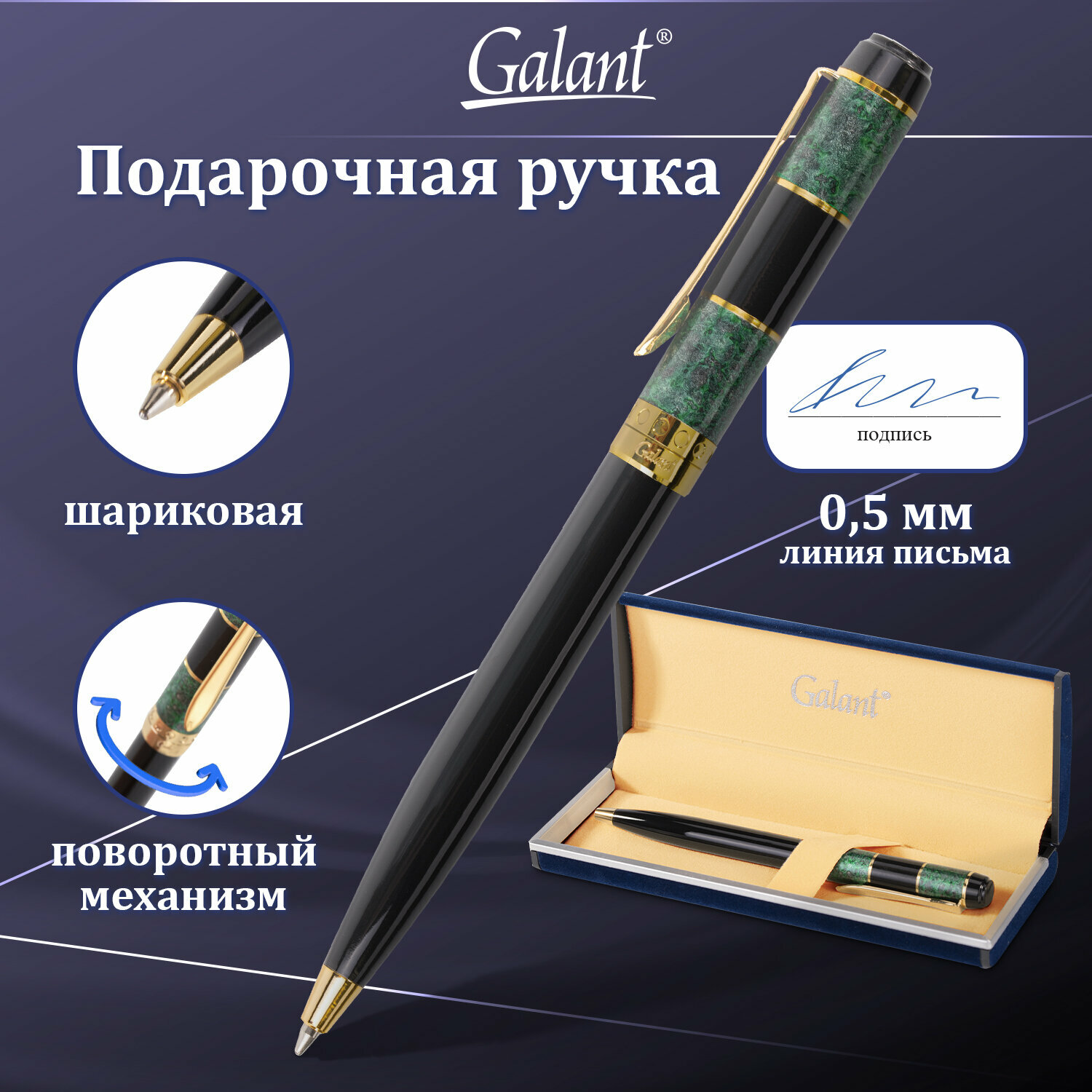 Ручка подарочная шариковая GALANT «Granit Green», корпус черный с темно-зеленым, золотистые детали, пишущий узел 0.7 мм, синяя