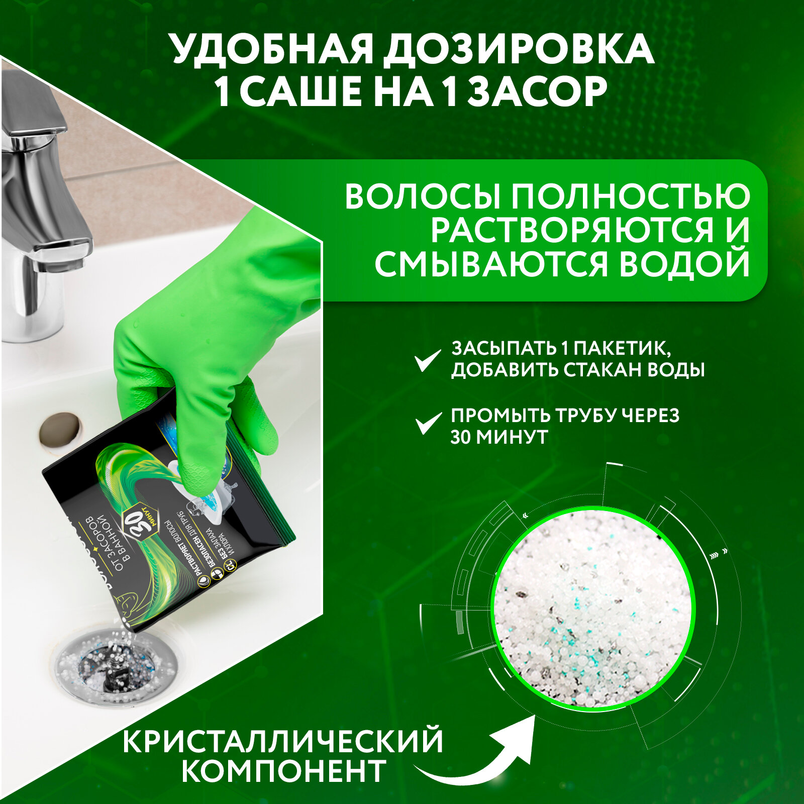 Средство для прочистки труб от засоров, антизасор от волос, Expel Волосогон, 50 г х 10 саше