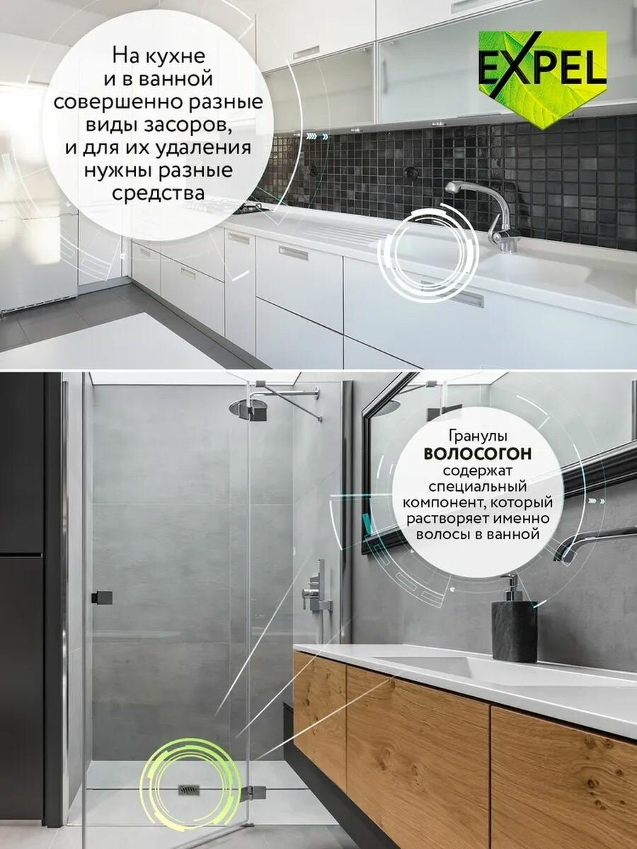 Expel Гранулы для прочистки труб от засоров из волос Волосогон, 2 шт., 0.05 кг