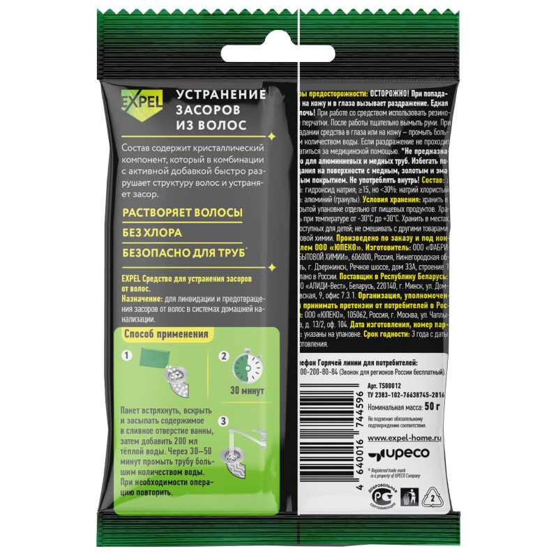 Expel Средство для устранения засоров от волос Волосогон, 0.05 кг