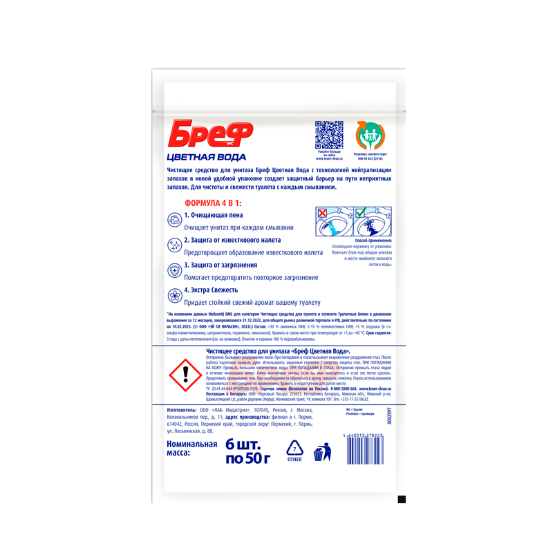 СохранитьБреф туалетный блок Цветная Вода Цветочная свежесть 0.05 кг 6 шт., дой-пак интересное: