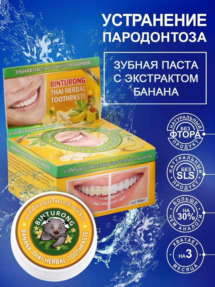 Зубная паста Binturong Banana Thai Herbal Toothpaste, c экстрактом банана, Тайланд, 33 г