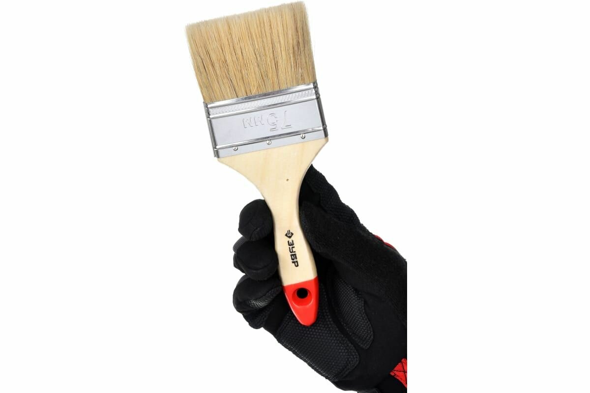 СохранитьМалярная плоская кисть ЗУБР Универсал 75 мм 3 натуральная светлая щетина деревянная ручка (4-01003-075) интересное:
