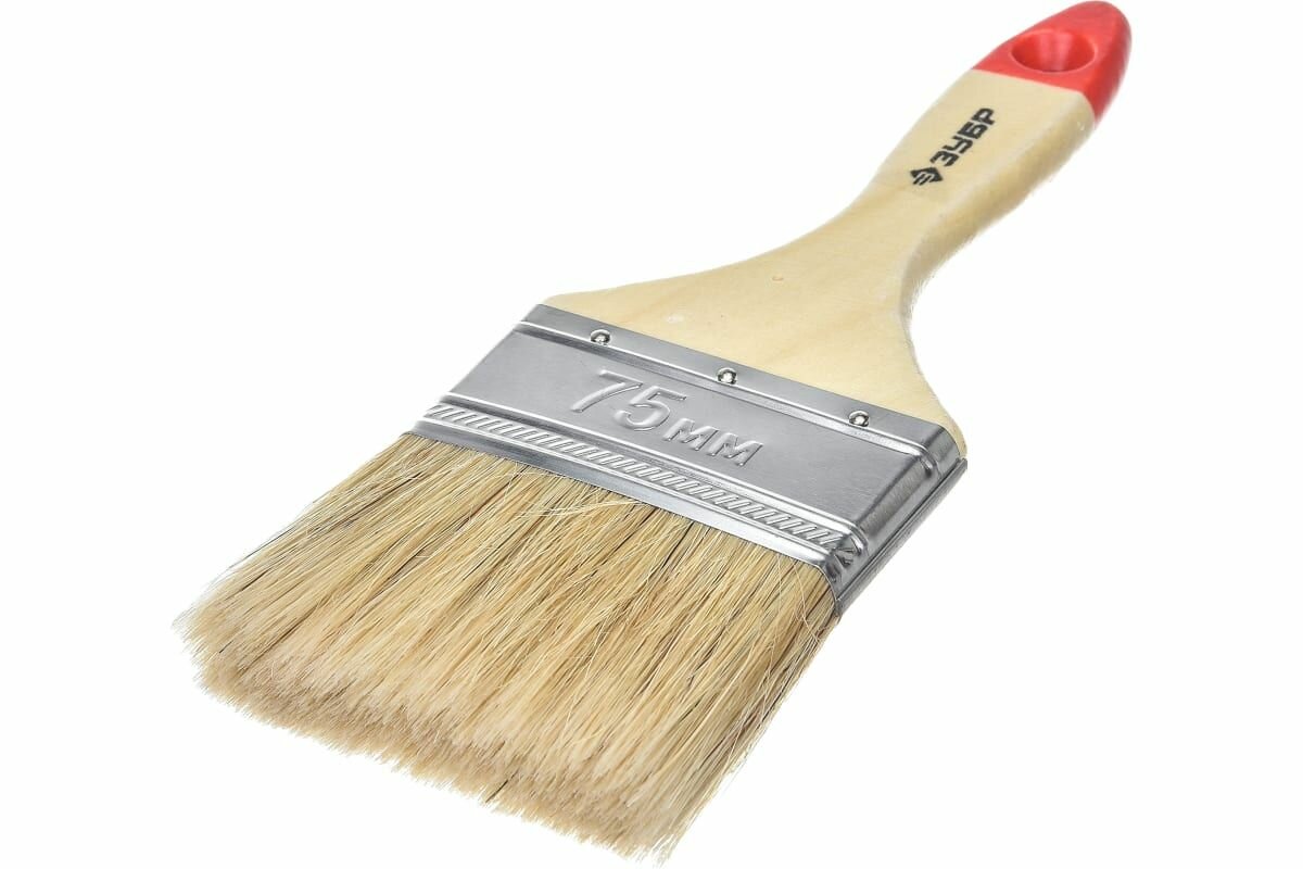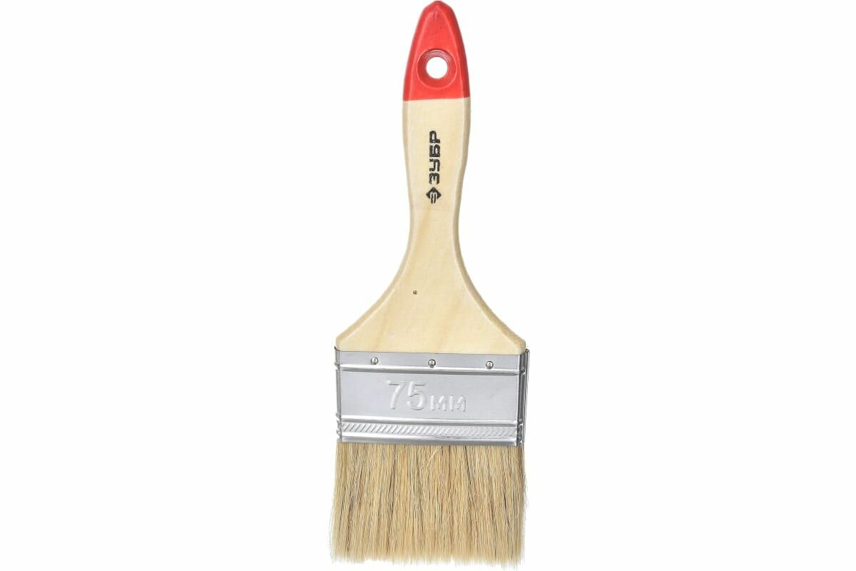 Кисть плоская ЗУБР "УНИВЕРСАЛ-МАСТЕР", натуральная щетина, деревянная ручка, 75мм {4-01003-075}