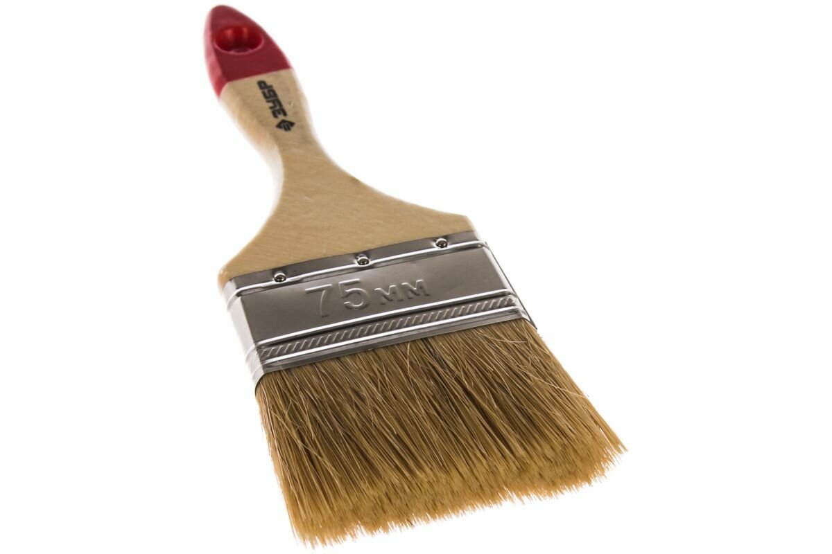 ЗУБР Универсал 75 мм, 3 светлая натуральная щетина, деревянная ручка, Плоская кисть, мастер (4-01003-075)