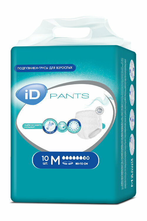 Подгузники-трусики для взрослых iD Pants размер M, 10 шт .