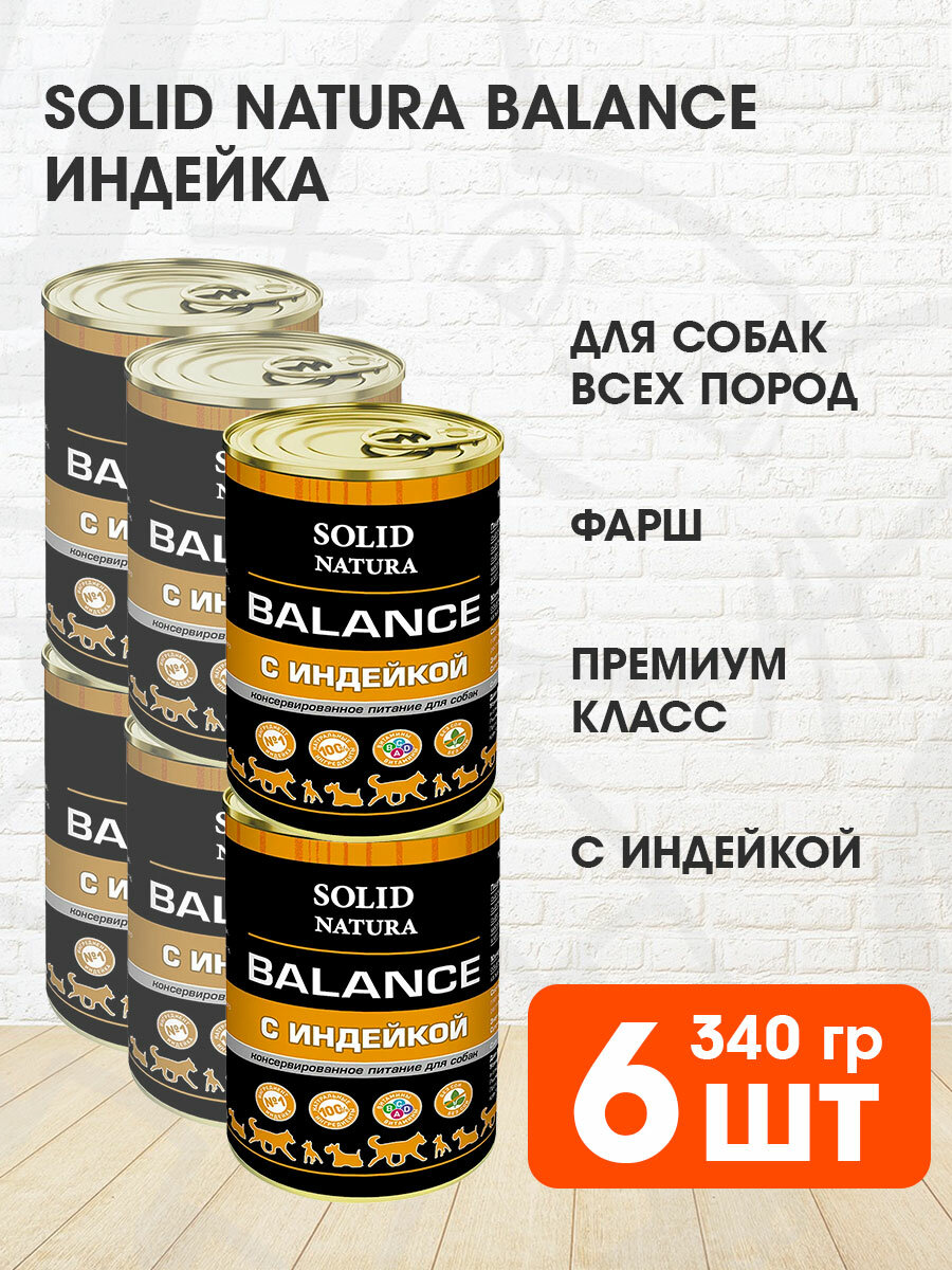 Влажный корм для собак, индейка Solid Natura Balance, упаковка 6 шт х 340 г