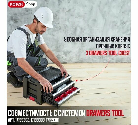 Купить Keter Ящик для инструментов 3 DRAWERS TOOL CHEST SYSTEM(Блок из 3 секций) 17199302