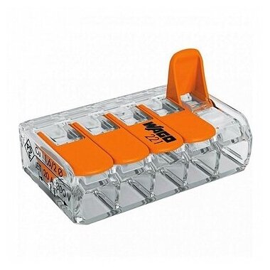 Клемма 5*4,0мм2 с рычажком компактная прозрачный Wago 221-415 2шт