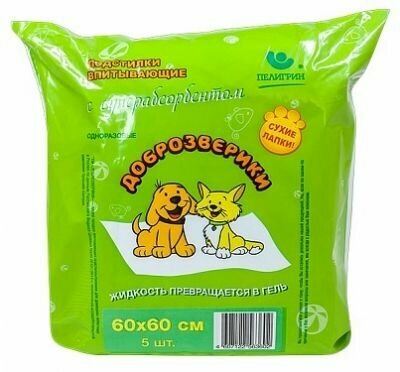Пелигрин Доброзверики Подстилки впитывающие д/животных с суперабсорбентом 60*60*5шт
