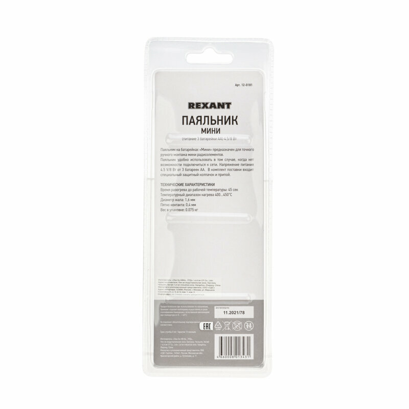 Rexant Паяльник мини REXANT 4.5 В/8 Вт, питание 3 батарейки AA