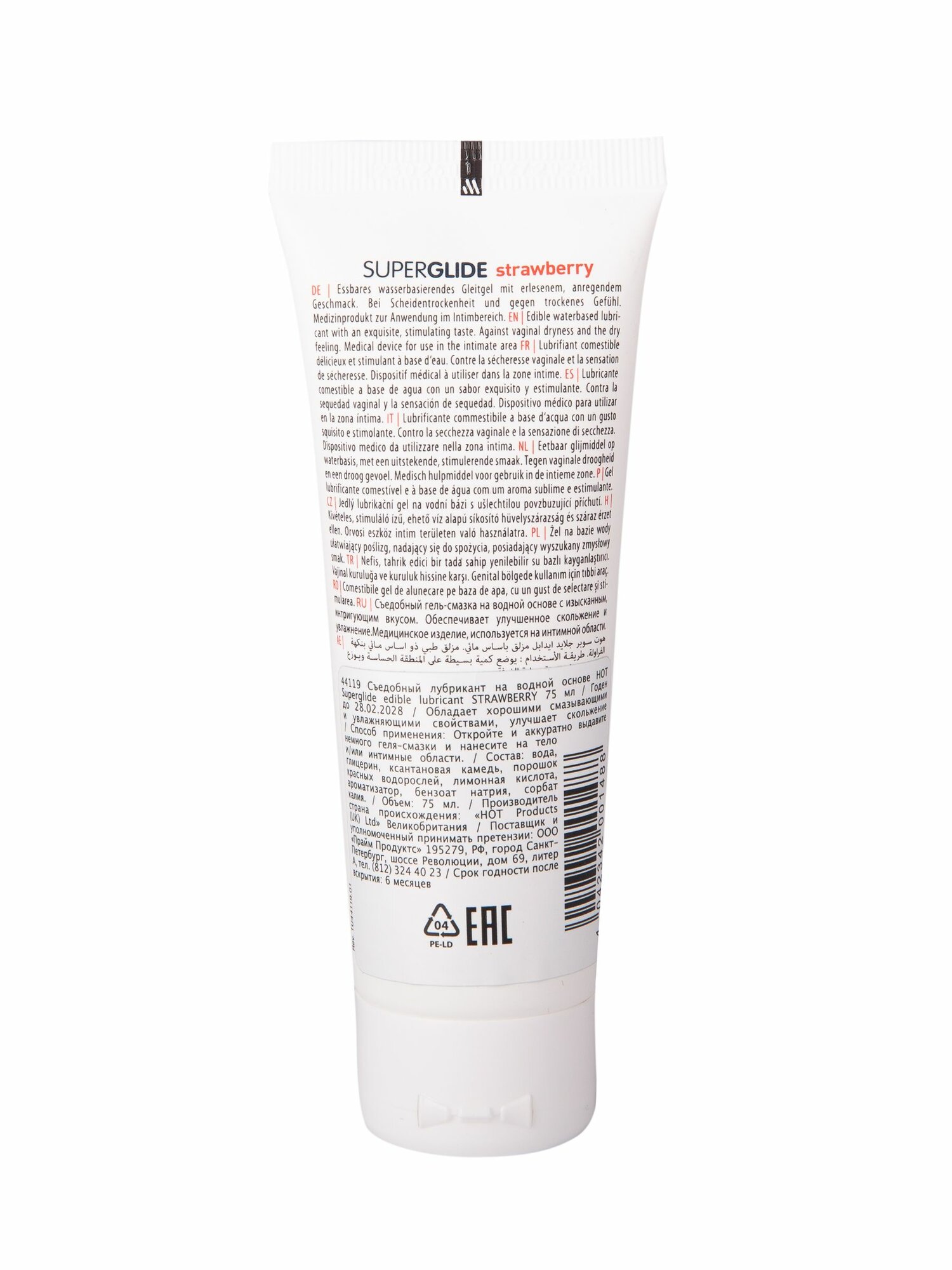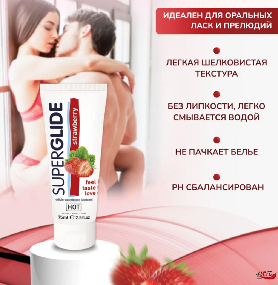 Гель -смазка HOT Superglide с ароматом клубники, 75 мл