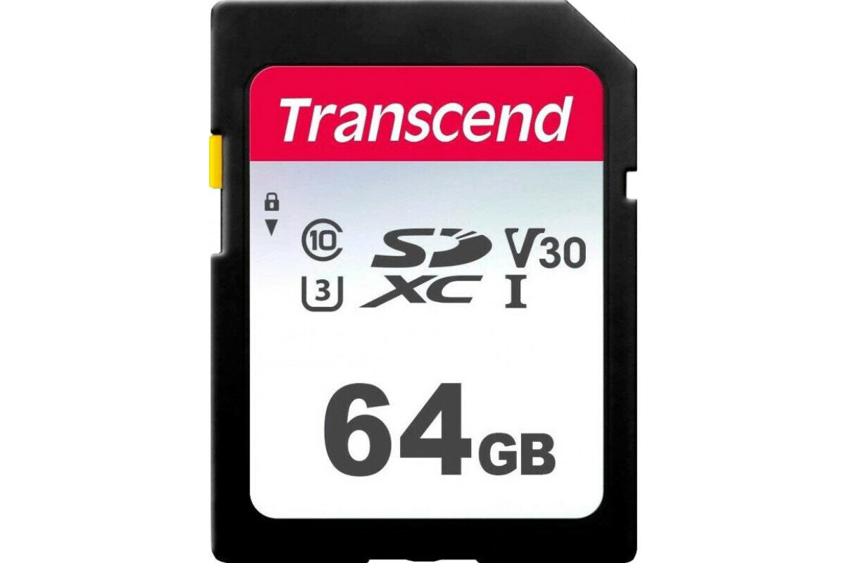 Карта памяти SDXC UHS-I U1 Transcend 300S 64 ГБ, 100 МБ/с, Class 10, TS64GSDC300S, 1 шт., без адаптера