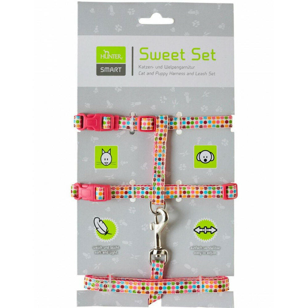 Шлейка с поводком HUNTER Sweet set, обхват шеи 18-28 см, розовый, S