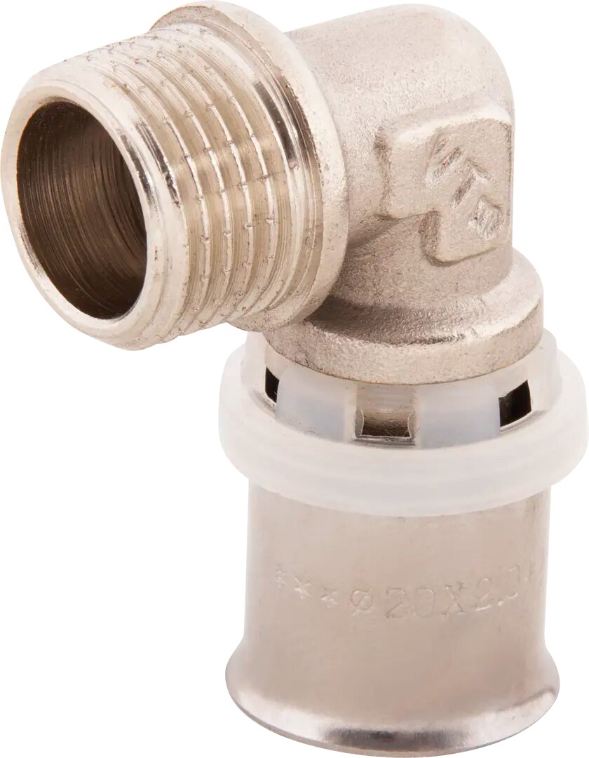 Пресс-фитинг - угольник с переходом на нар. резьбу 20 мм х 1/2" VTm.253.N.002004