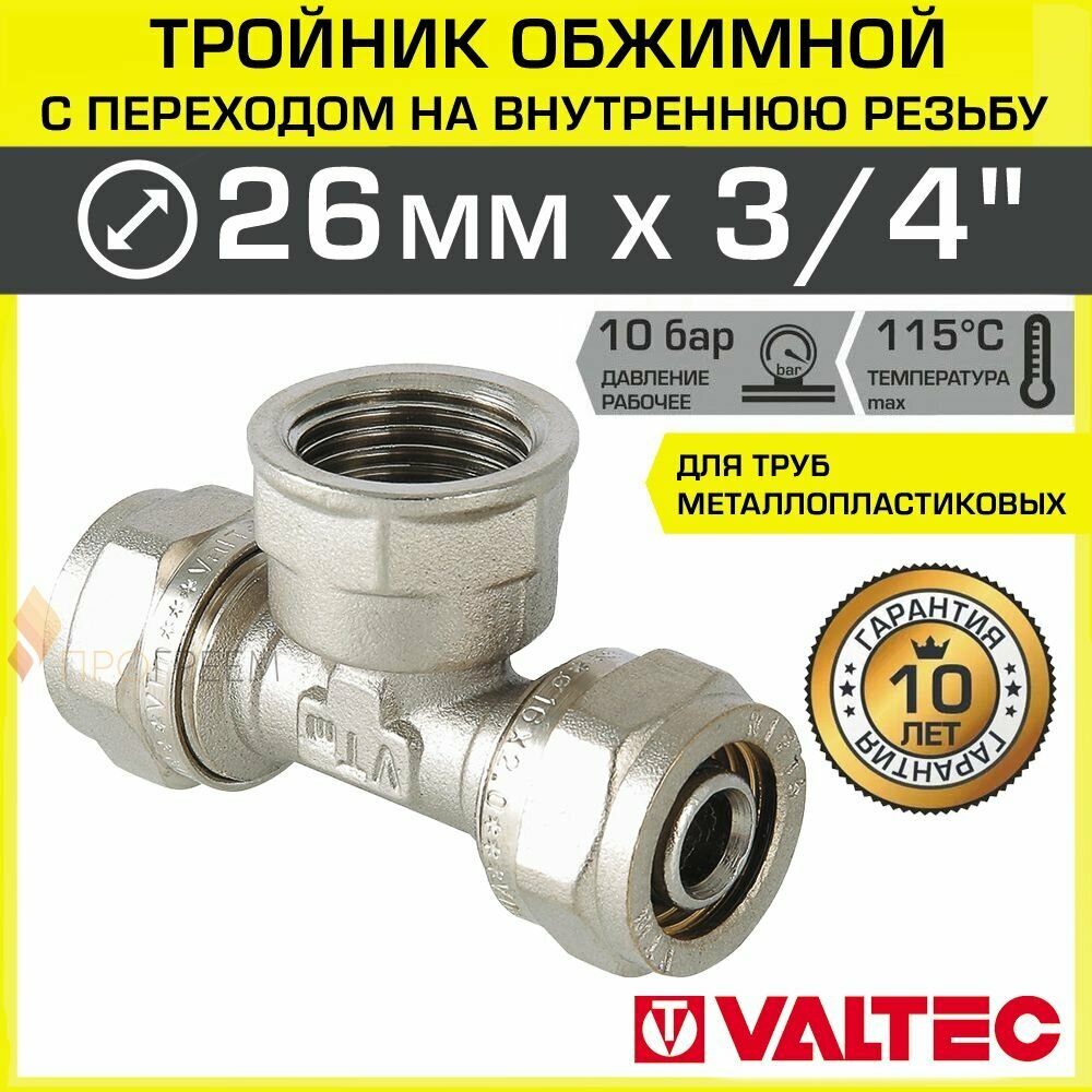 Тройник VALTEC VTm.332.N.260526 26x3/4"x26 обжим – резьба 1 шт.