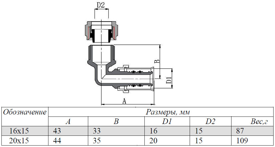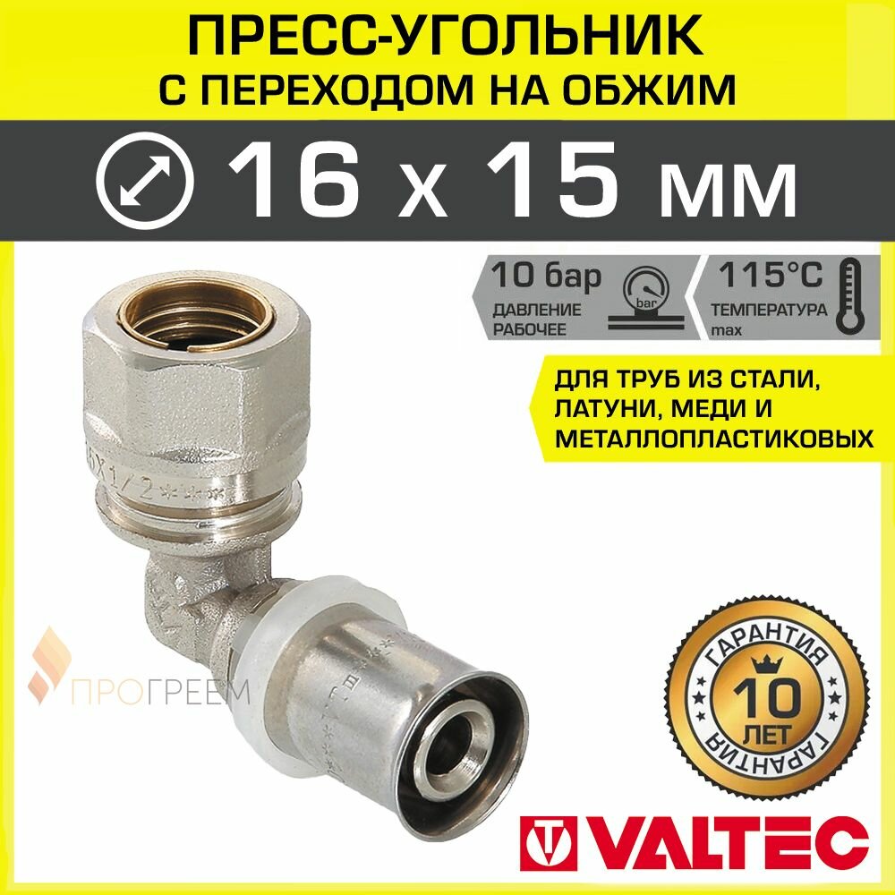 Пресс-фитинг - угольник с переходом на обжимное соединение 16 x 15 мм VTm.253.I.001615 интересное: