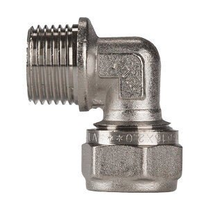 Фитинг обжимной - угольник с переходом на нар.резьбу 16 мм х 3/4" VTm.353.N.001605