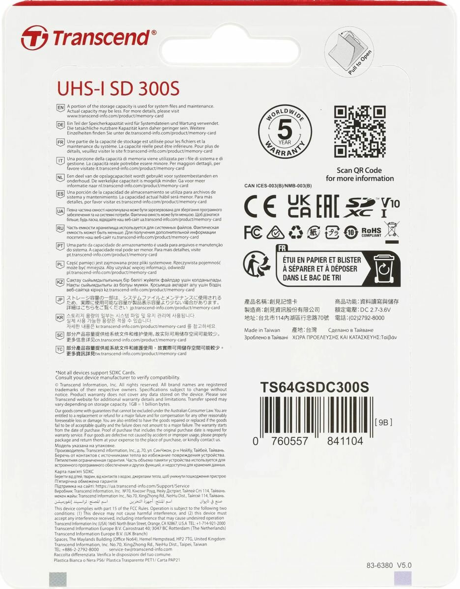 СохранитьКарта памяти Transcend SDXC 64GB 300S UHS-I U1 V10 интересное: