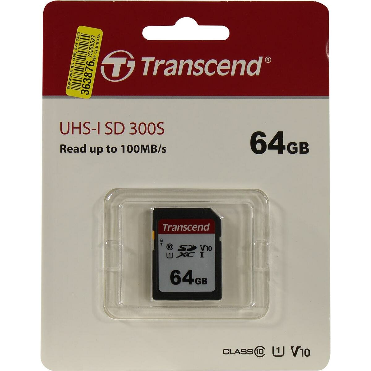 Карта памяти Transcend 300S SDXC UHS-I U1 64Gb (100/20 MB/s)