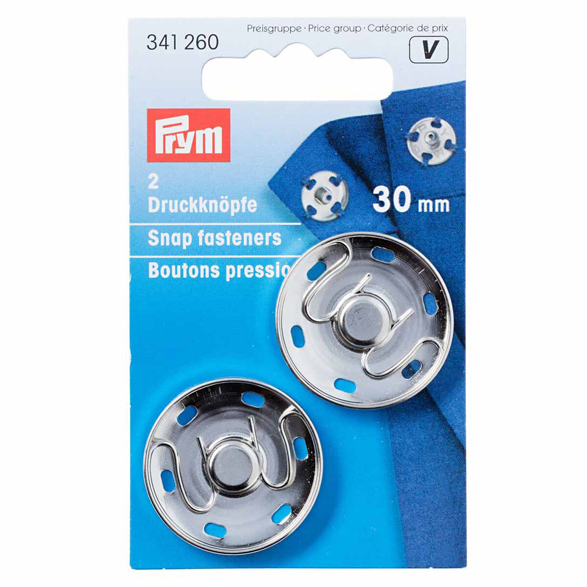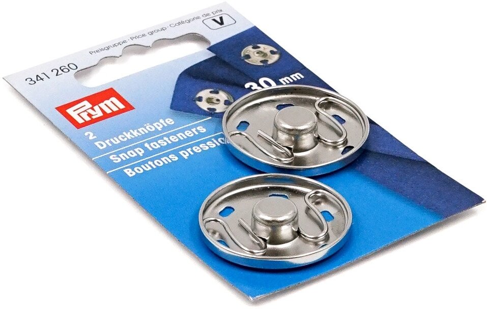 341260 Пришивные кнопки (латунь), серебристый цвет, 30 мм, Prym