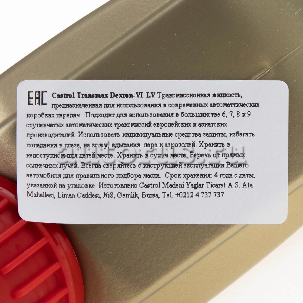 CASTROL 156CAA Масо трансмиссионное ATF Transmax DEXRON VI MERCON LV 1 CASTROL