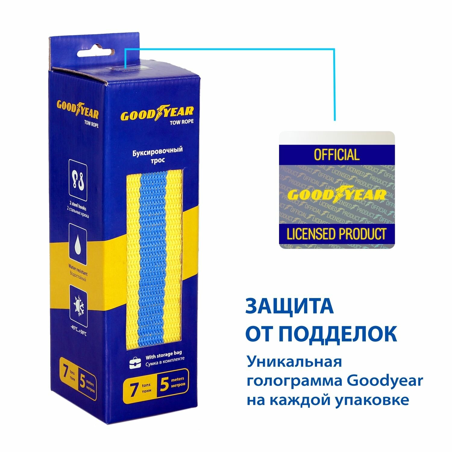 Трос Буксировочный Goodyear 5 Тонн, 5 Метров, 2 Стальных Крюка, Водостойкий, Сумка В Комплекте Россия GOODYEAR арт. GY004001