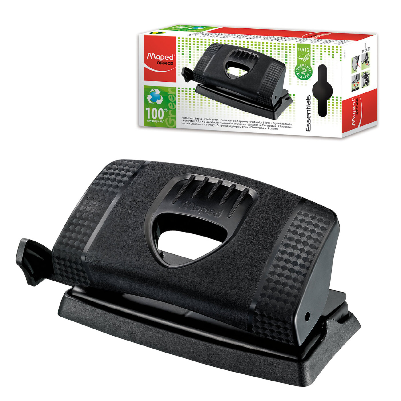 Дырокол Maped "Essentials Green", малый, на 12 листов, карбоновое покрытие, черный (451211)