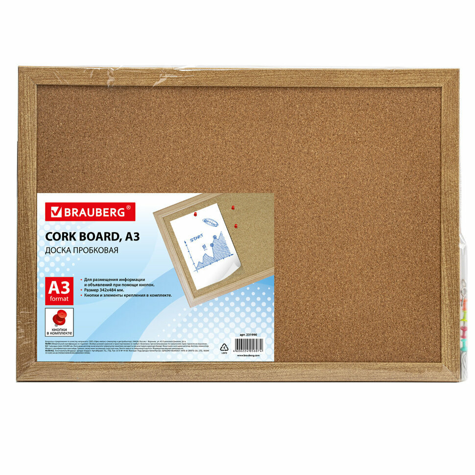 Доска пробковая для объявлений А3 (342х484 мм), BRAUBERG, 231990
