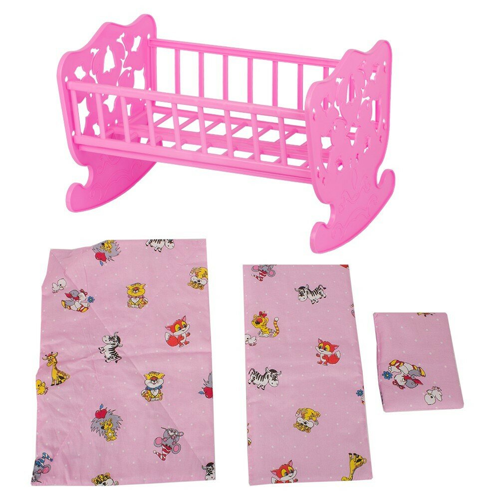 Купить Игрушка Кровать кукольная (48 см х30 см) с комплектом белья (матрас, подушка, одеяло) (4 пр.)