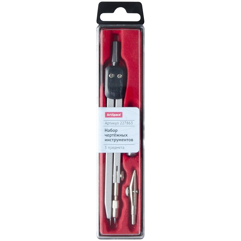 Готовальня ArtSpace, 3 предмета, циркуль 135мм, пластиковый футляр ( Артикул 227863 )