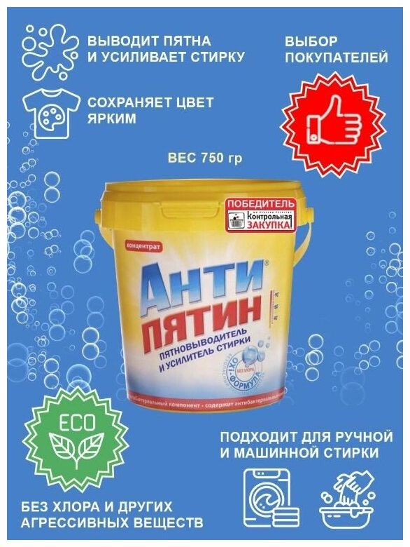 Антипятин Порошковый пятновыводитель 750гр ведро