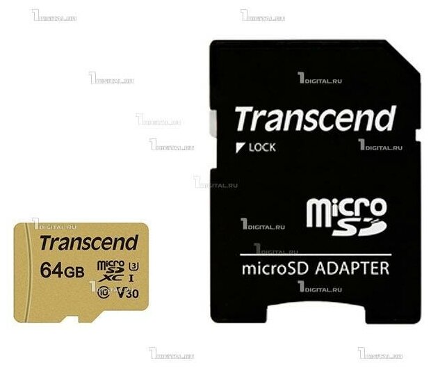 Карта памяти TS64GUSD500S на 64GB microSDXC Class 10 UHS-I U3 V30 R95, W60MB/s с адаптером