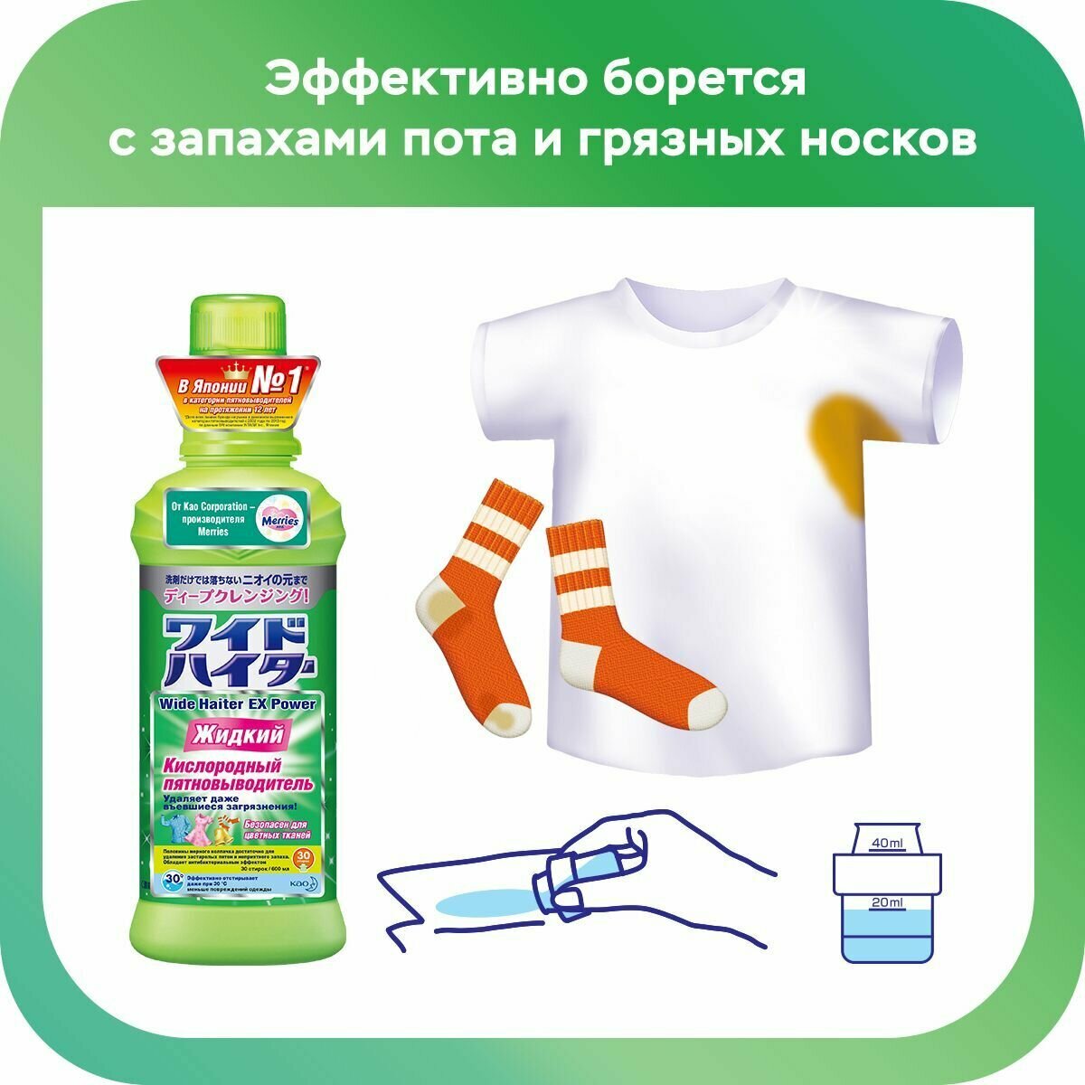 Пятновыводитель Attack Wide Haiter EX Power для белого и цветного белья, 600 мл